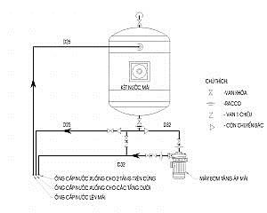 Sơ đồ lắp đặt cụm bơm tăng áp nhà dân điển hình.